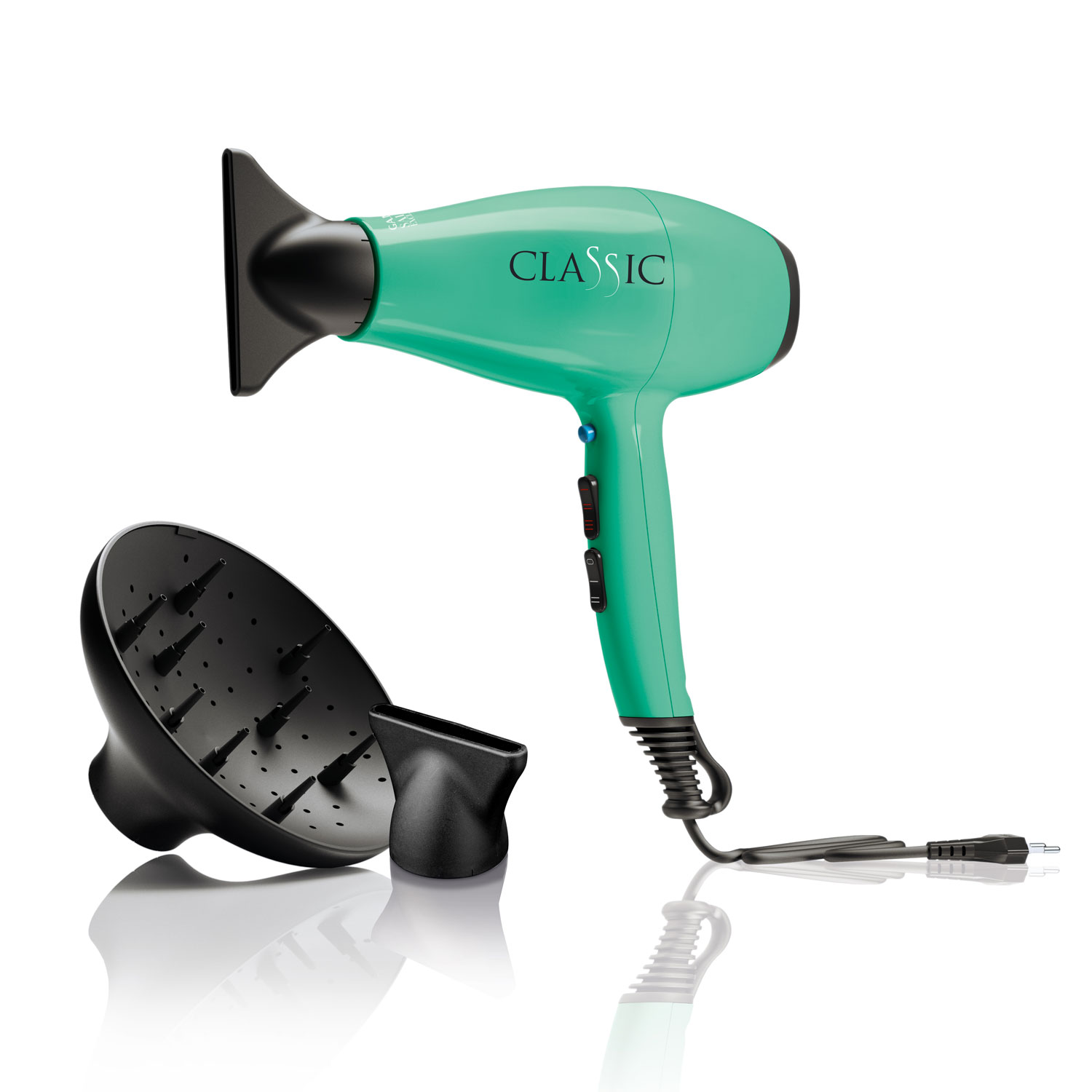 Ищете профессиональный фен, который станет не только надежным рабочим инструментом, но и внесет яркость и цвет в ваш салон красоты или ванную комнату? Classic – быстрый и современный фен для волос, доступный в 7 цветовых вариантах: классические белый и черный, а также зеленый, синий, оранжевый, цвет морской волны и фуксия. Благодаря специально разработанной конструкции, этот фен для волос самый бесшумный в линейке при сохранении высокой мощности в 2200 Вт. Высокая мощность фена последнего поколения обеспечивается профессиональным мотором АС. В комплект входят диффузор, оптимальный для естественной укладки кудрей и локонов и придания максимального объема, а также 2 профессиональные насадки-концентратора 4 и 8 мм. Более узкая насадка создает мощный направленный поток воздуха для укладки локонов, а широкая создает более рассеянный поток воздуха, что позволяет высушить волосы за считанные минуты. Фен имеет 2 скорости сушки и 3 температурных режима, которые можно комбинировать для получения оптимального потока воздуха, а также функцию «холодный обдув», с помощью которой можно надолго зафиксировать укладку. Благодаря продуманной форме, размерам, фен очень маневренный и подходит для долгой работы в течение всего дня без ощущения усталости рук. Фен для волос Classic, произведенный в Италии в соответствии с высокими стандартами качества, исключительно надежный профессиональный инструмент, рассчитанный более чем на 2000 часов работы.