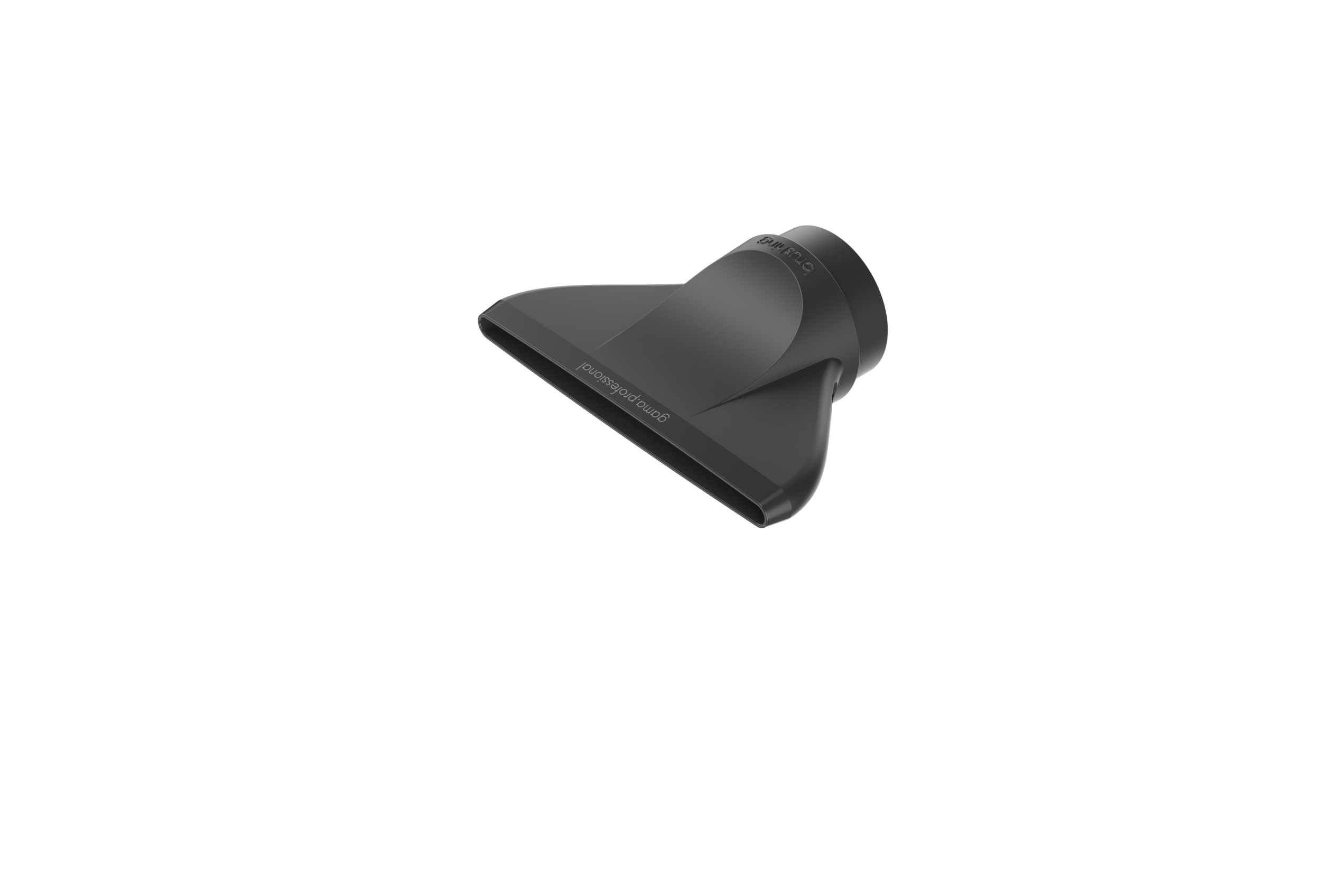 Диффузор диаметром 13,3 см распределяет поток горячего воздуха по большой площади, позволяя избежать повреждения волосяной кутикулы. Используется для сушки вьющихся волос и для создания объемных причесок.
