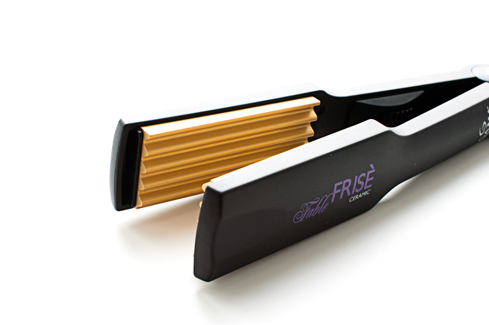 Fable Frisé - утюжок-выпрямитель волос для создания эффектного гофре с легко и быстро. Гофре- укладка, вошедшая в моду в 80-е, которая обрела новое дыхание. Это универсальная техника, на базе которой можно создавать разнообразные образы: распущенные и объемные волосы, собранные в хвост, наполовину собранные волосы или хвост сбоку. Преимущество этого утюжка-выпрямителя – создание объема. Если у вас очень прямые, лишенные объема волосы, с помощью этого выпрямителя гофре от Gama вы сможет радикально е изменить свой образ! Для этого мы советуем выполнить гофре на все пряди волос от корней до кончиков. Результат превзойдет все ожидания!! Fable Frisé очень простой в использовании: разделите волосы на пряди примерно по 2 см; зажмите их у корней и пройдите утюжком по всей длине. Не скользите, а прижимайте и снова открывайте пластины для моделирования каждого следующего участка пряди. Технология быстрого нагрева Quick Heat обеспечивает нагревание до постоянной температуры 220°C за несколько секунд после включения, что значительно сокращает время укладки. Благодаря керамическому покрытию пластин, волосы сохраняют натуральную мягкость и здоровый вид, а статическое электричество устранятся. Широкие пластины позволяют захватывать большие пряди волос и моделировать в одно движение.