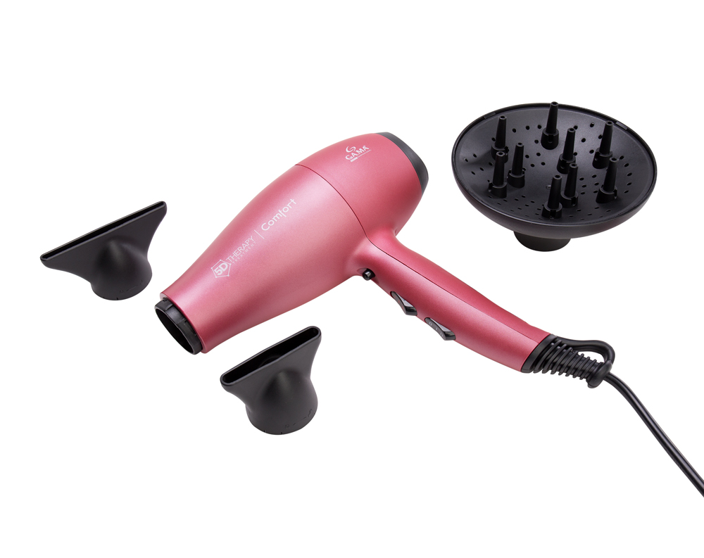 Главная особенность фена COMFORT HALOGEN 5D THERAPY – галогенная лампа в конструкции нагревательного элемента. Она создает длинные тепловые волны, которые проникают внутрь волоса, не повреждая его при сушке. Высокая теплоемкость в сочетании с постоянным потоком ионов, озонной технологией и длинными инфракрасными волнами ускоряет процесс сушки и защищает волосы от чрезмерного нагрева. Легкий и мощный фен с потребляемой мощностью 2200 Вт, надежным и долговечным АС мотором гарантирует превосходное качество и бесперебойную работу. Вы можете выбрать наиболее подходящий из 6 режимов сушки, комбинируя 3 температурных режима и 2 скорости, а также использовать функцию «холодный обдув» для закрепления укладки.
