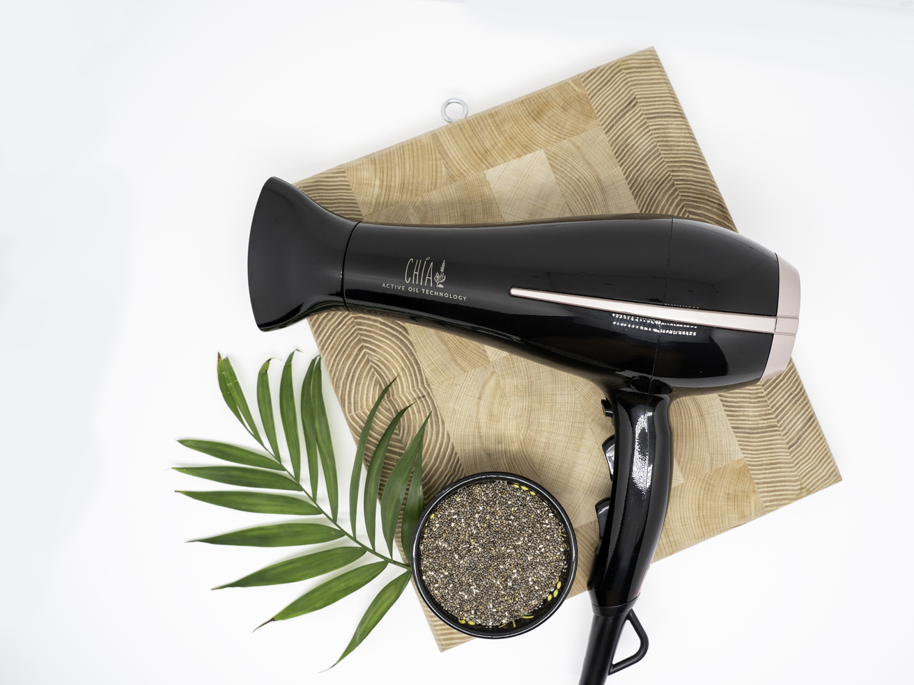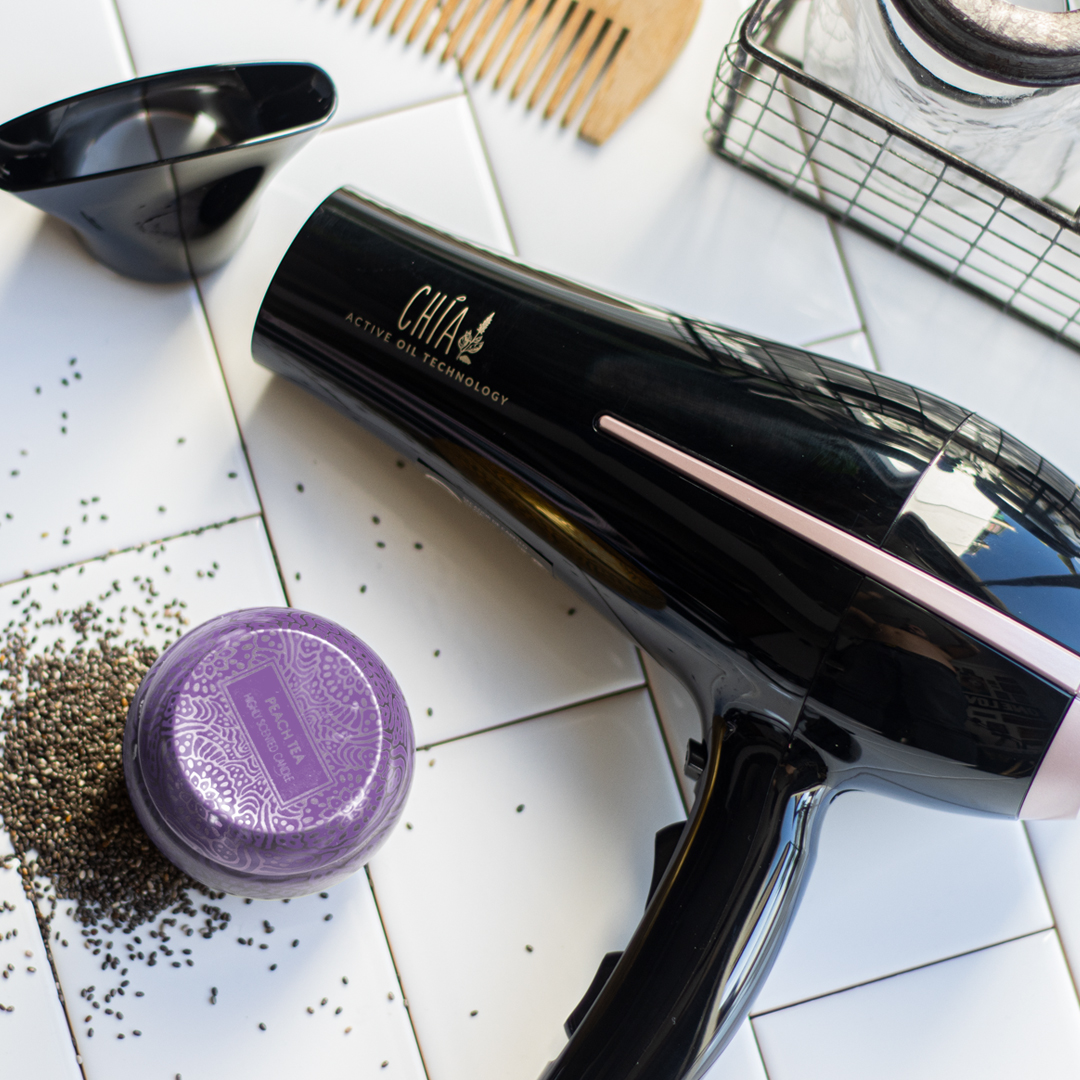 Классический легкий фен с технологией Ceramic Ion и эфирным маслом семян чиа, семена которого содержат витамин С, белок и незаменимые жирные кислоты, особенно Омега-3.