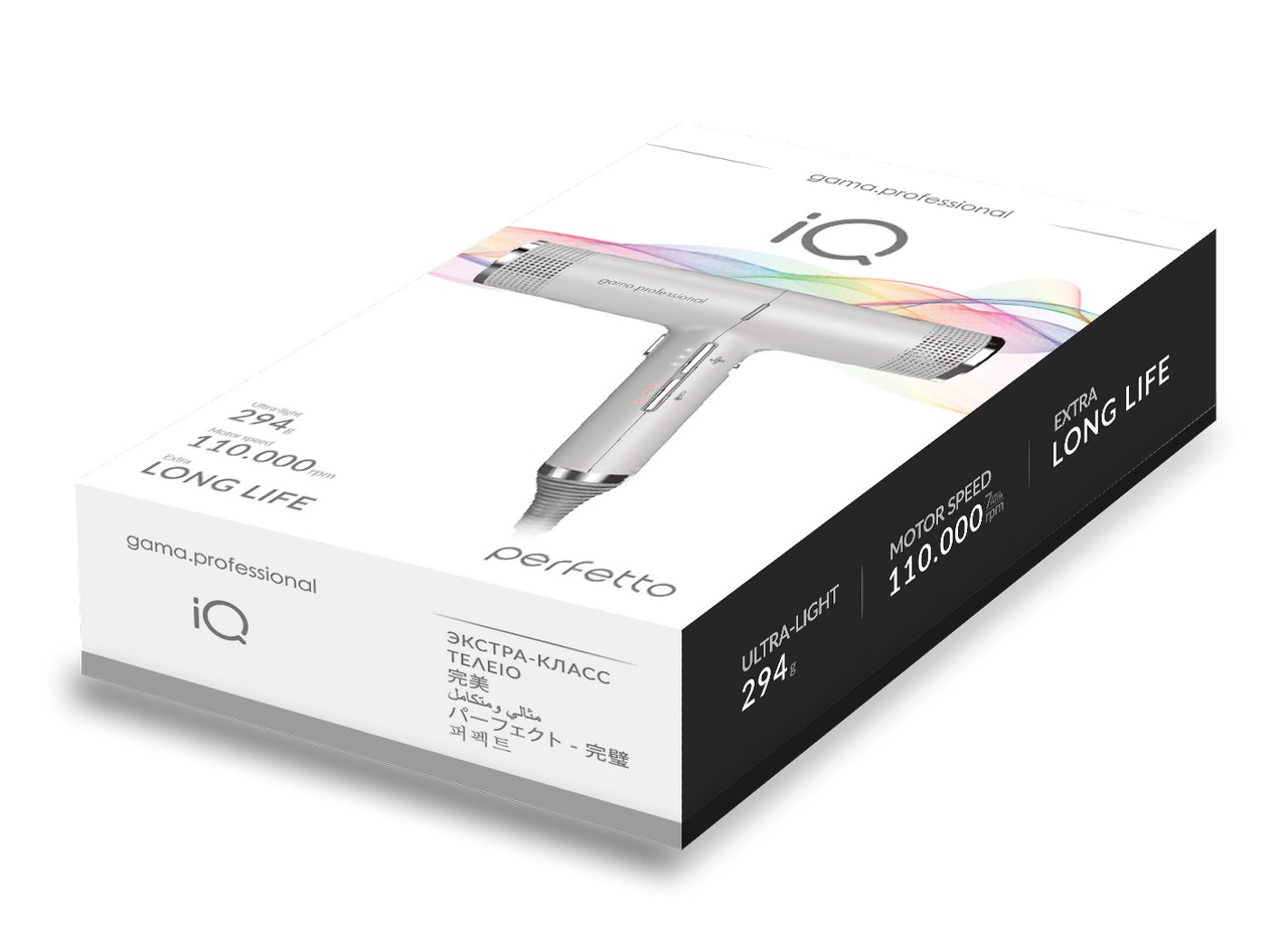 Фен GA.MA IQ Perfetto – самый лёгкий фен с профессиональными технологиями, адаптированный для домашнего использования, он весит всего 294 грамма, сушит волосы на 30% быстрее и имеет более длительный срок службы. Это прибор, о котором всегда мечтали девушки!