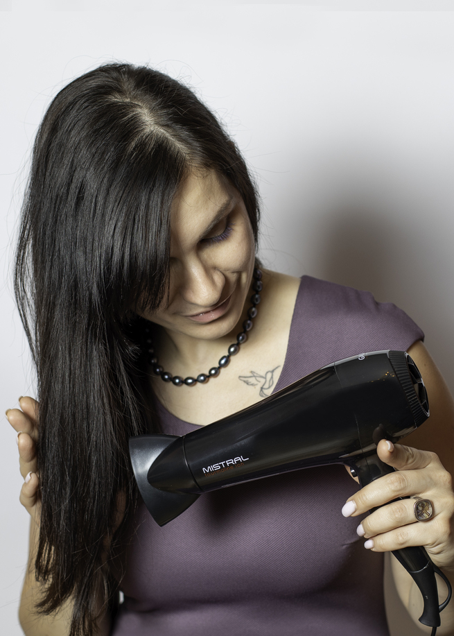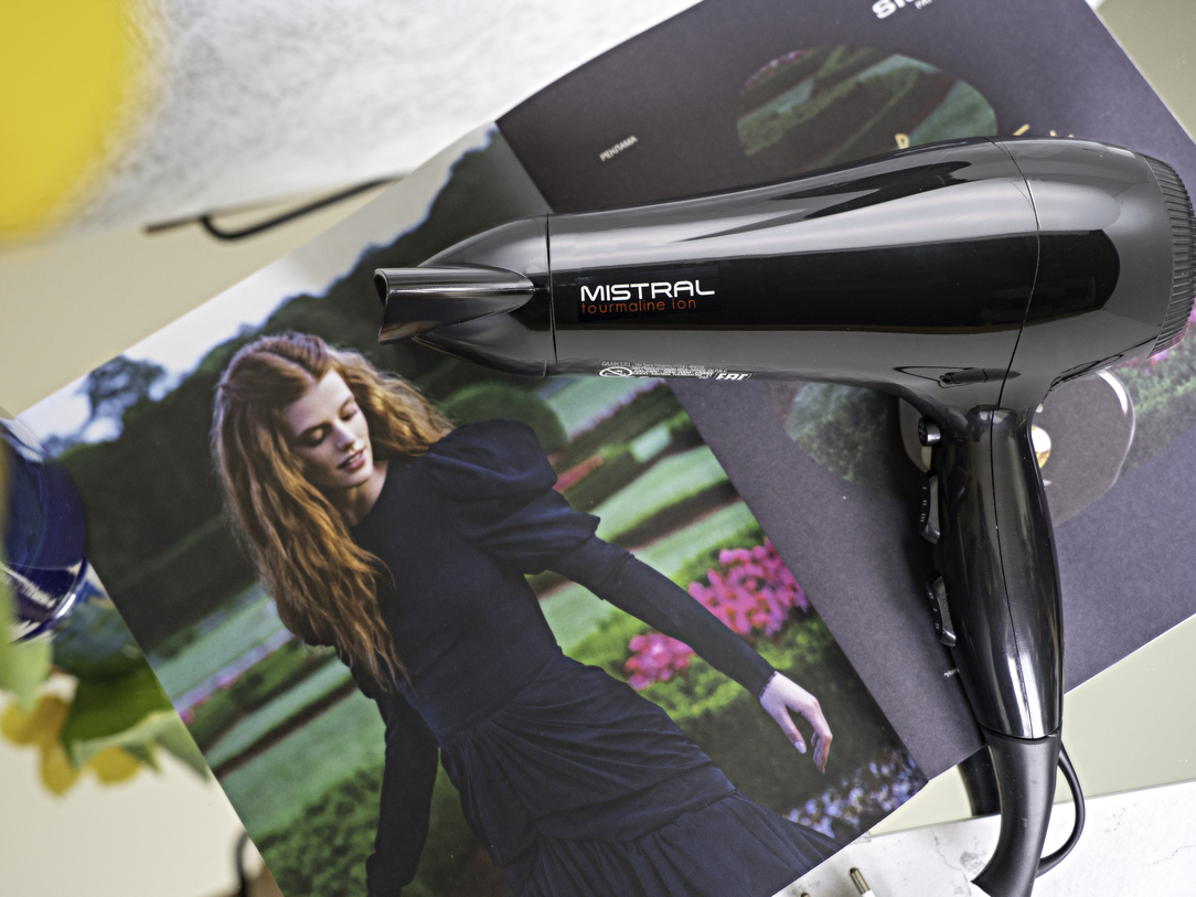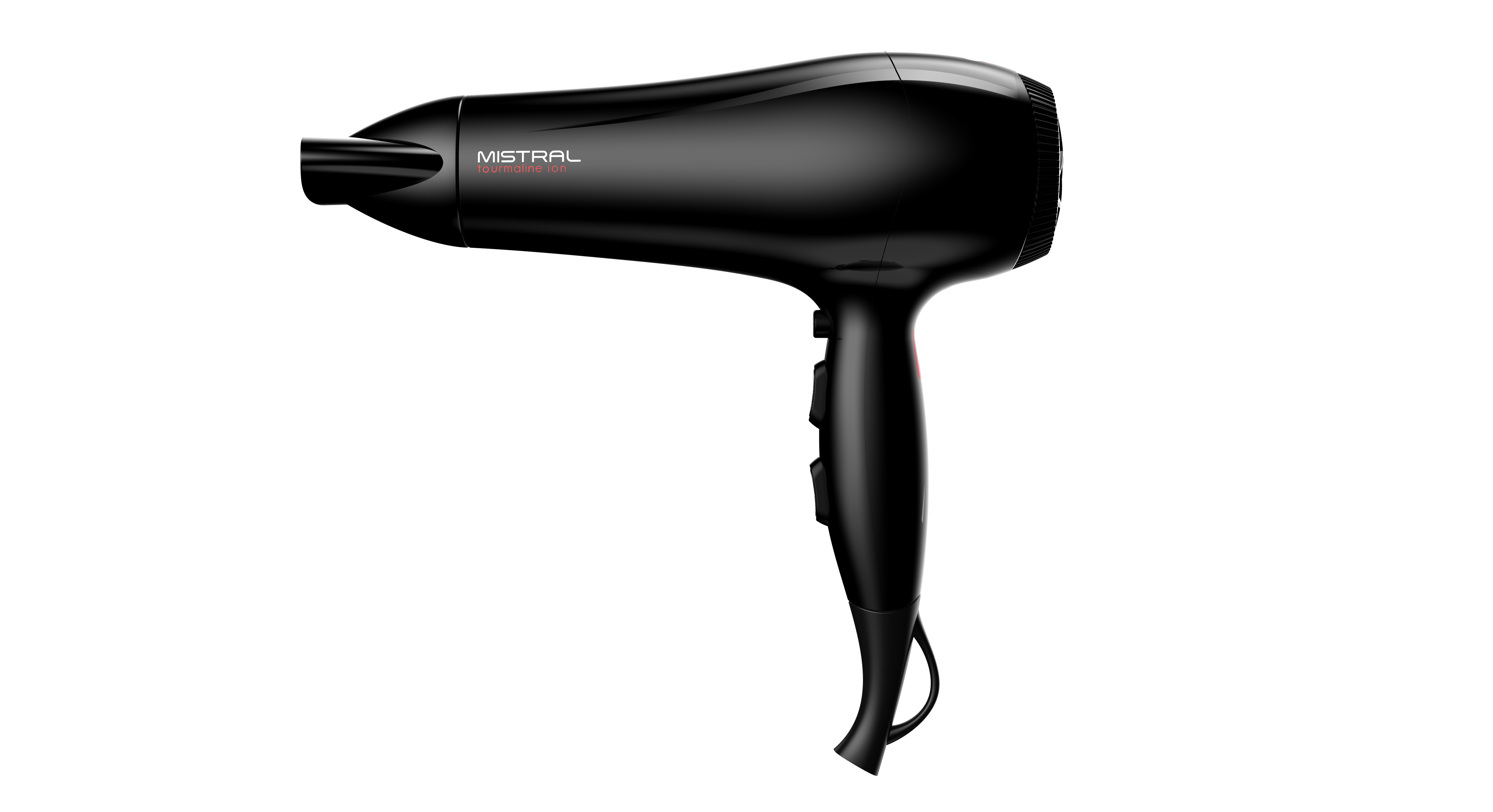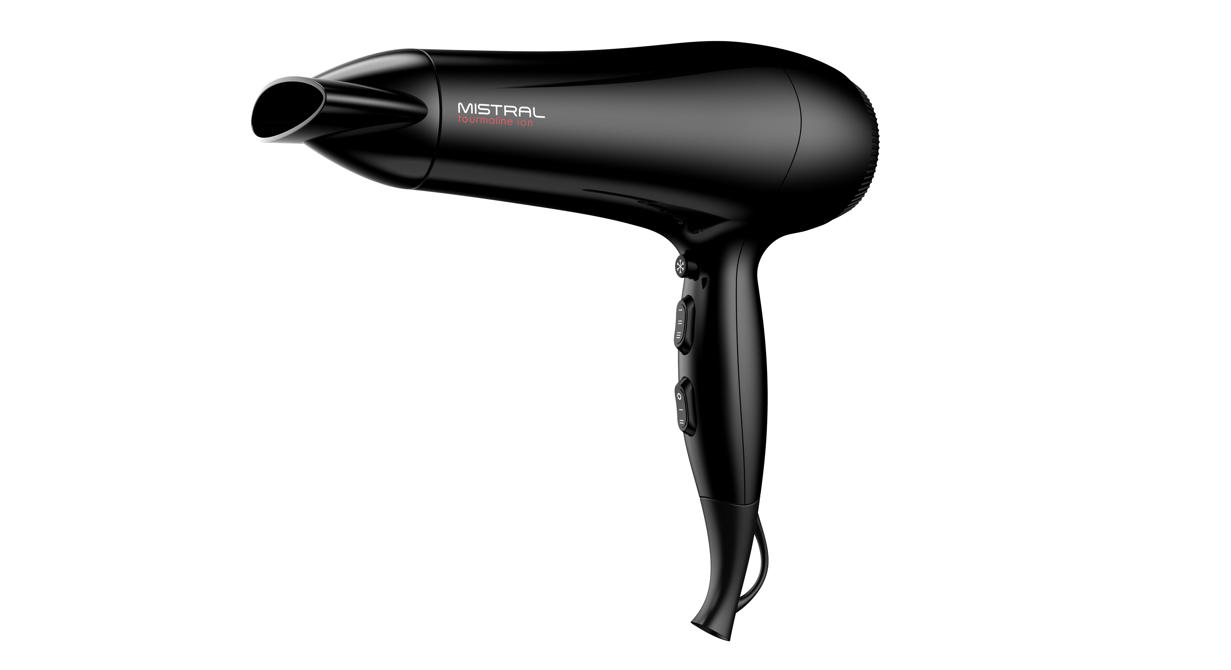 Легкий фен для волос Mistral Tourmaline Ion с мощностью 2200 Вт и DC мотором выполнен в классическом черном цвете. Кнопки управления расположены на рукоятке, фен удобно лежит в руке, имеет небольшой вес всего 405 грамм. У него 6 режимов работы: 3 температуры и 2 скорости, а также функция холодного обдува, которая помогает закрепить укладку. В комплект входит одна насадка-концентратор шириной 8 см для сушки и укладки на брашинг.