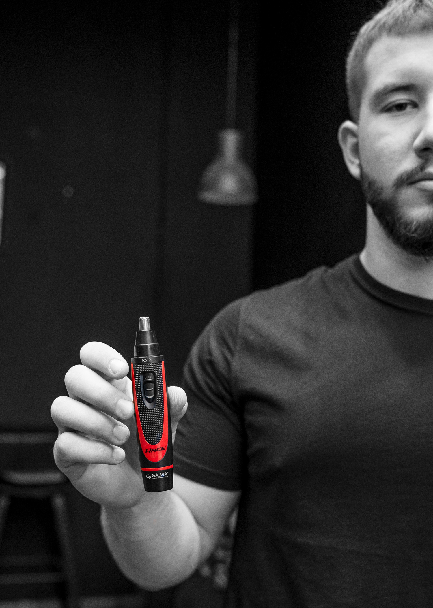 Триммер для носа R612 серии Race оснащен съемной насадкой из нержавеющей стали, которая позволяет подстригать волосы в носу и ушах. После использования ее можно снять и промыть под водой. Прибор работает от 1 батарейки (типа АА, не входит в комплект поставки).
