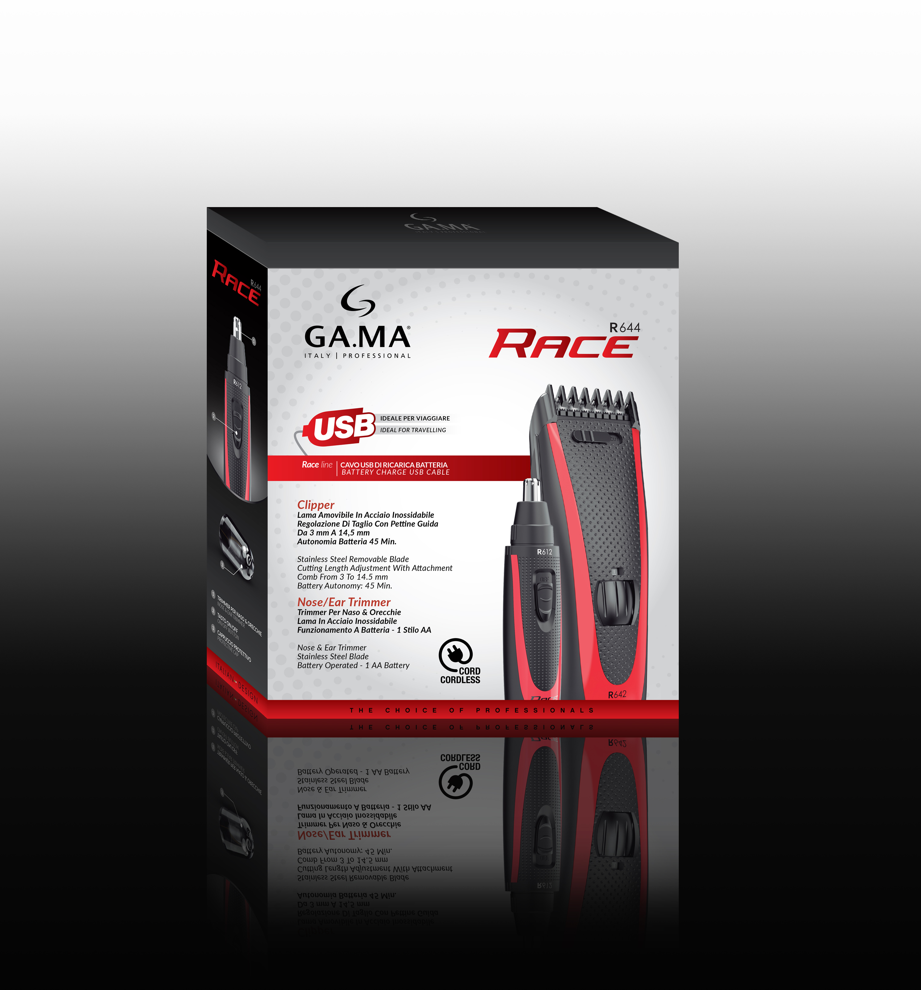 Машинка для стрижки R642 серии Race оснащена 24 уровнями регулировки длины стрижки с гребнем от 3 до 14,5 мм (с шагом 0,5 мм), которые настраиваются при помощи колесика в центральной части прибора. Высота среза без гребня составляет всего 0,8 мм. Кроме того, для уменьшения объема волос предусмотрена функция филировки для заключительного этапа стрижки, целью которого является прореживание волос для придания им объема. Филировка кончиков волос позволяет состричь секущиеся и сделать линию прически более плавной, окантовка становится более мягкой. Машинку можно заряжать через USB-порт ноутбука или с помощью стандартного USB-адаптера 5В 1000 мА (не входит в комплект). Прибор может работать как от сети, так и автономно до 45 минут после полной зарядки. В комплект входит 1 сдвижная насадка. За съемным лезвием из нержавеющей стали легко ухаживать при помощи набора для очистки, который входит в комплект.