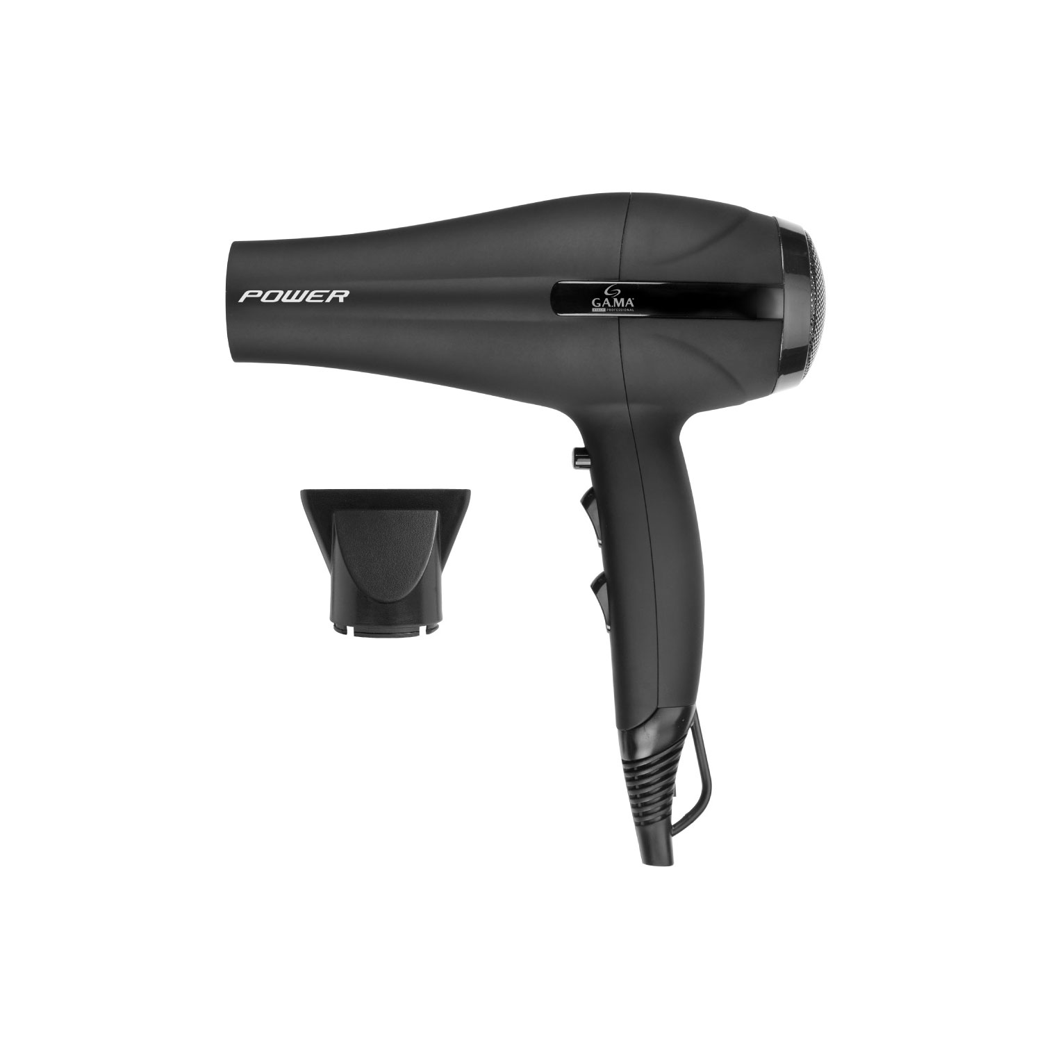 Power – мощный фен (2200 Вт), оборудованный надежным мотором АС, разработанным специально для продолжительного, частого и долгого использования. Это изящный фен черного цвета с корпусом, полностью выполненный из нескользящего материала soft touch, который не дает выскользнуть из рук. Решетка и внутренний конус фена имеют керамическое покрытие, которое помогает поддерживать рабочую температуру на постоянном уровне и способствует равномерному распределению тепла, благодаря чему сушка становится более быстрой и максимально деликатной. Функция «холодный обдув» помогает надолго зафиксировать укладку. В комплекте есть насадка-концентратор. Задний фильтр фена съемный для облегчения его чистки от волос и пыли. Помните, что регулярная чистка значительно продляет срок службы фена! Фен удобно подвешивать за специальное кольцо на шнуре.