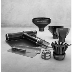 2 узких насадки-концентратора с ненагреваемой зоной на концах (Cool Zone) и вращением на 360 ° для сушки, укладки на брашинг и выпрямления прядей. Ширина насадок 108 мм и 81 мм.